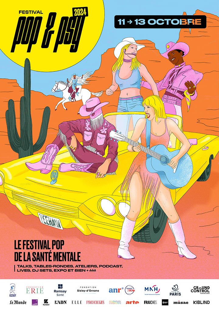 Imaginé et créé en 2018 par le Dr Jean-Victor Blanc, médecin psychiatre à l’hôpital Saint Antoine (AP-HP), enseignant à Sorbonne Université et auteur, le Festival Pop & Psy entend changer le regard sur la santé mentale. Un parti pris presque évident : même les célébrités et les personnalités publiques soufrent, au cinéma, dans les séries, de plus en plus de personnages sont atteintes de troubles psychiques – trouble bipolaire, dépression, autisme... Britney Spears, Stromae, Céline Dion ou Jérémy Ferrari, le nageur Michael Phelps ou encore la gymnaste Simone Biles, des stars osent aujourd’hui prendre la parole, et évoquer ouvertement leur (état de) santé mentale. Pour son importance dans la représentation dans les œuvres culturelles, la Pop culture est désormais, et sans conteste, un médium nécessaire pour déconstruire les clichés entourant les troubles psychiques.