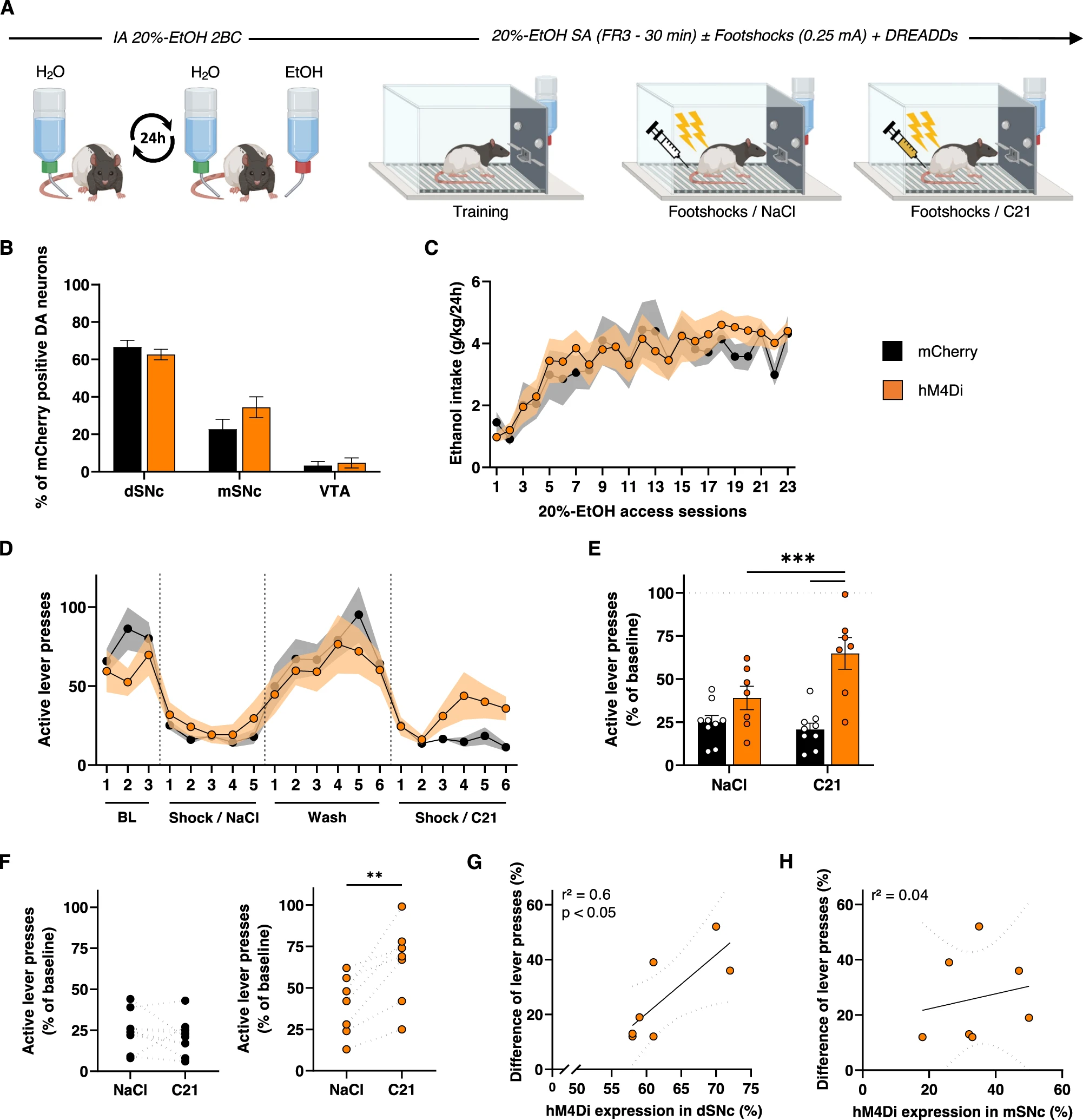 L’induction d’un déficit en dopamine chez le rat par chémogénétique – une technique consistant à activer ou inhiber sélectivement des neurones grâce à une molécule cible – conduit à l’apparition d’une prise compulsive d’alcool. Chez des rats initialement capables de contrôler leur consommation, la diminution expérimentale de l’activité des neurones dopaminergiques de la voie nigro-striée (impliquée dans le contrôle des mouvements et des habitudes) entraîne une persistance à consommer malgré des conséquences négatives (chocs électriques modérés dans les pattes, désagréables mais non douloureux).