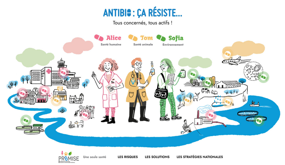 Illustration : Site web interactif www.antibioresistance-une-seule-sante.fr, créé dans le cadre du projet PROMISE