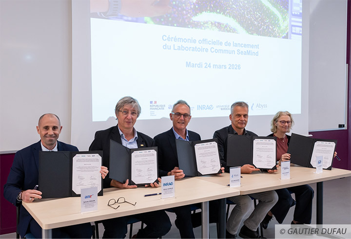 Le projet de LabCom SeaMind s’inscrit dans une démarche proactive et innovante en combinant l’expertise reconnue de l’équipe NutriMind du laboratoire NutriNeuro (INRAE, université de Bordeaux, Bordeaux INP) en santé cognitive et celle d’Abyss Ingredients dans l’extraction de composés bioactifs marins. Ensemble, ils visent à développer de nouveaux actifs innovants marins scientifiquement validés par des études pré-cliniques puis cliniques afin de préserver la santé cognitive tout au long de la vie, en proposant une offre plus différenciante et plus efficace sur le marché des compléments alimentaires et qui réponde aux besoins de naturalité des consommateurs.